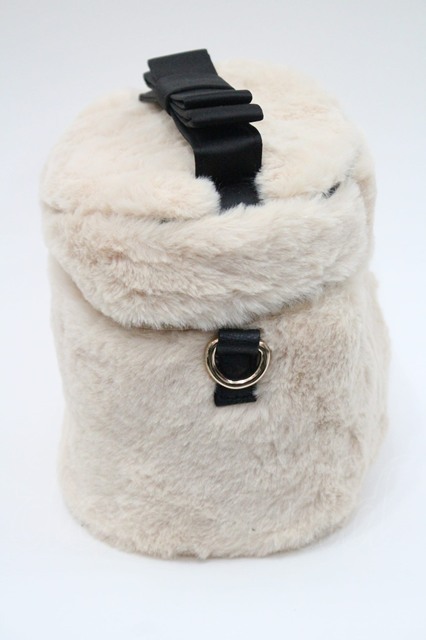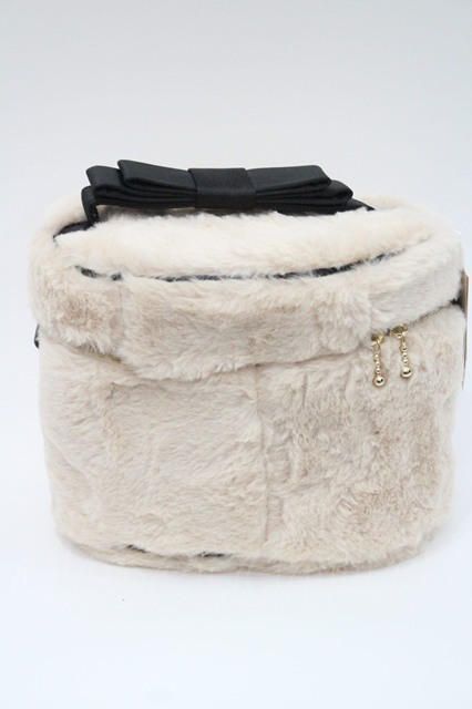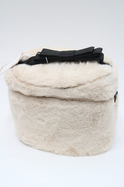 Fi.n.t / ファーリボンバニティバッグ ベージュX黒 I-26-01-08-110-CA-BG-SA-ZI [2100060000048438-I-26-01-08-110-CA-BG-SA-ZI]