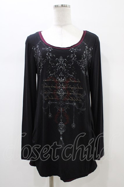 Ozz Croce / プリント刺繍カットソー ブラック H-26-01-13-1053-OO-TO-KB-ZH