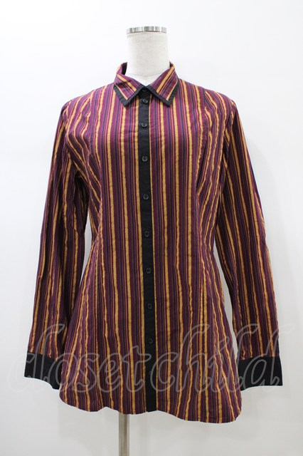 PUTUMAYO / 切替ロングブラウス エンジ×紺ストライプ H-26-01-13-1058-PT-BL-KB-ZH [2100030000083176-H-26-01-13-1058-PT-BL-KB-ZH]