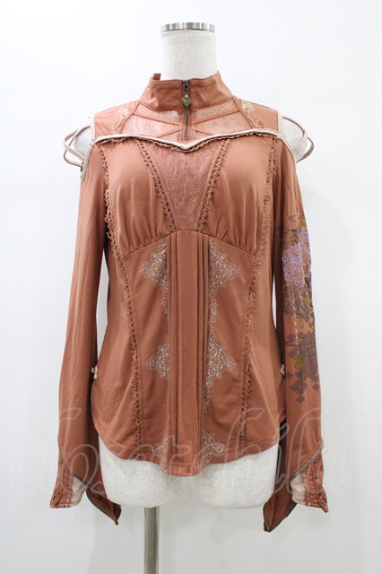 Ozz oneste / 和チャイナレース切替トップス 茶 H-26-01-13-1040-OO-TO-KB-ZH