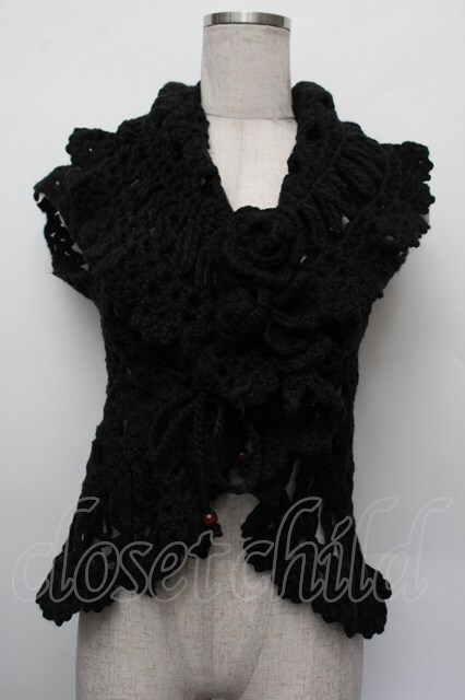 PINK HOUSE / ローズモチーフブローチ付きハンドニットベスト 黒 S-26-01-08-017-LO-TO-HR-ZS [2100020000031471-S-26-01-08-017-LO-TO-HR-ZS]