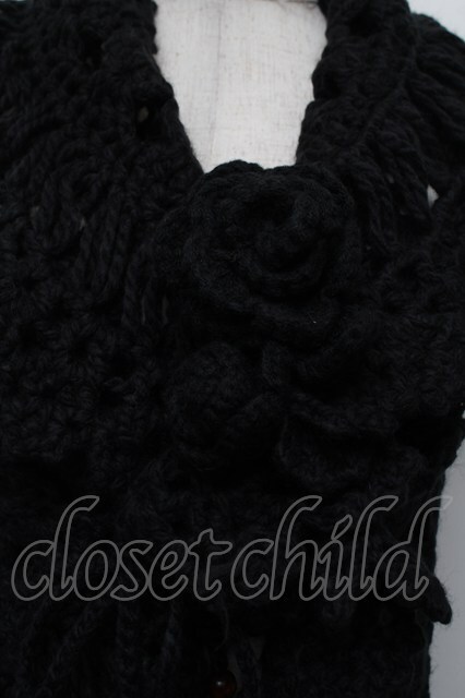 PINK HOUSE / ローズモチーフブローチ付きハンドニットベスト 黒 S-26-01-08-017-LO-TO-HR-ZS