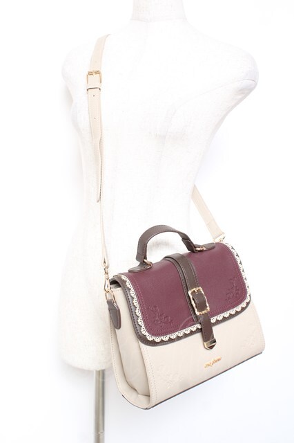 axes femme / スカラ配色薔薇エンボスバッグ ワイン Y-26-01-09-020-AX-BG-SZ-ZY