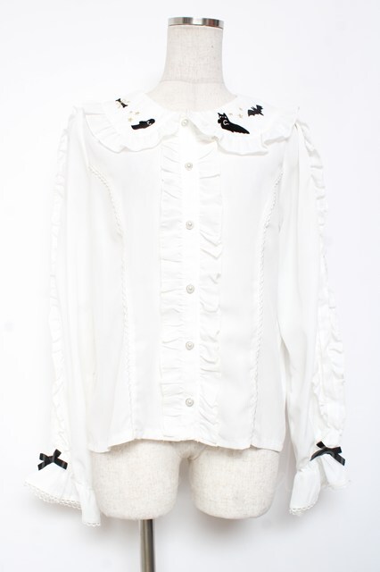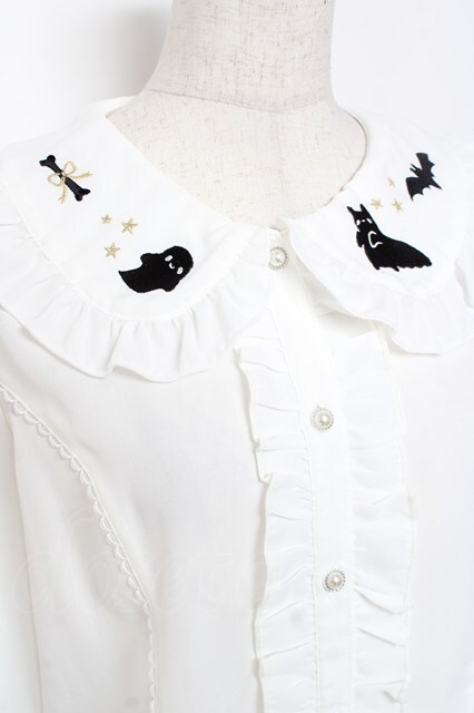 axes femme kawaii / ハロウィンナイト刺繍ブラウス M 白 Y-26-01-09-030-AX-BL-SZ-ZY
