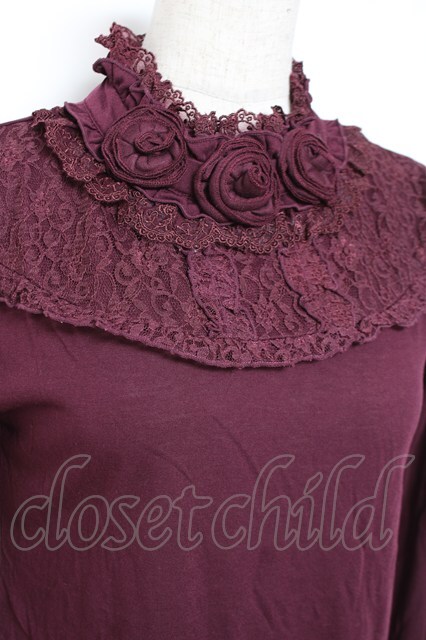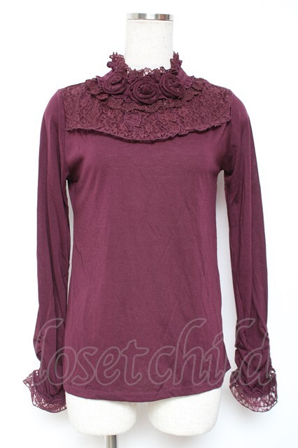 axes femme / 薔薇コサージュ付きタートル M ワイン Y-26-01-09-043-AX-TO-SZ-ZY