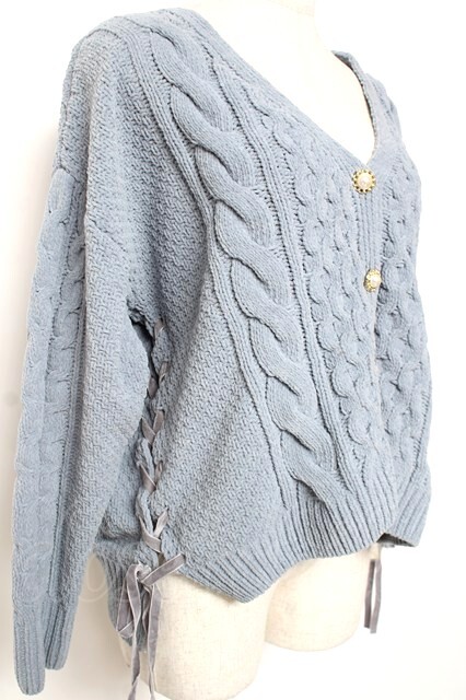 axes femme / サイドレースアップニットカーディガン M サックス Y-26-01-09-055-AX-TO-SZ-ZY