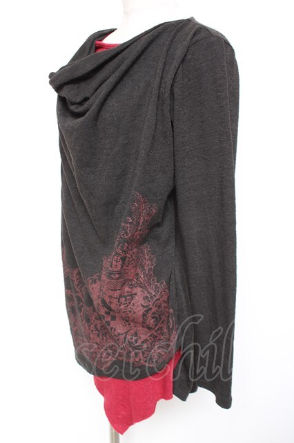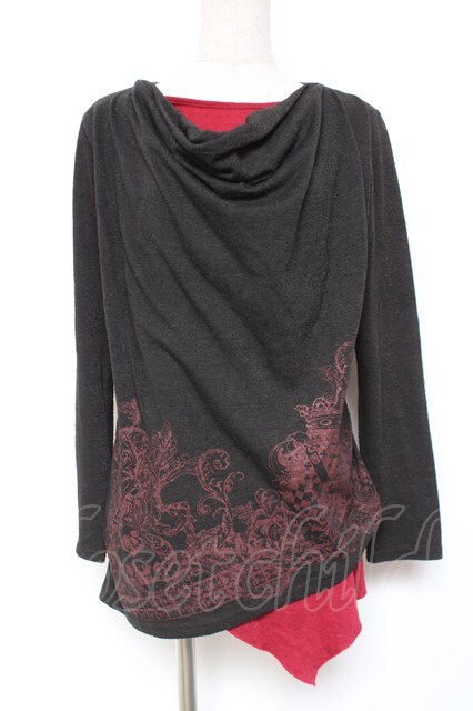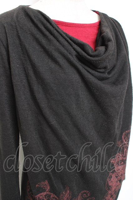 ALGONQUINS / ドレープレイヤードトップス F 黒×赤 Y-26-01-09-062-AL-TO-SZ-ZY