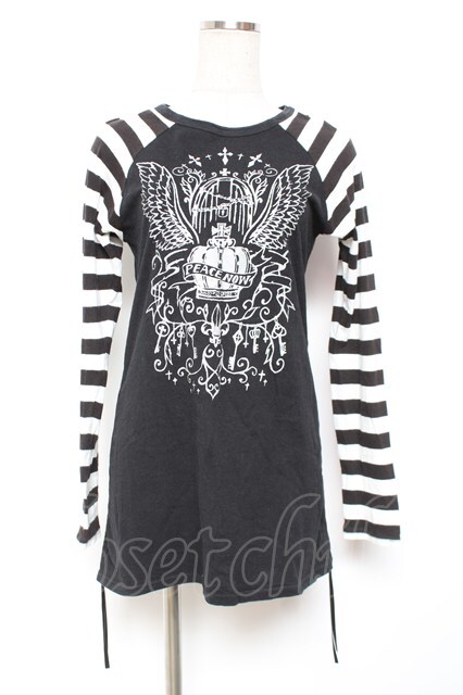 PEACE NOW / ボーダー切替プリントカットソー F 黒 Y-26-01-09-063-PU-TO-SZ-ZY [2100070000058266-Y-26-01-09-063-PU-TO-SZ-ZY]
