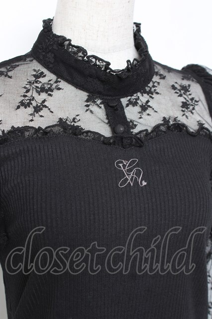 evelyn / ロゴ刺繍リブトップス 黒 Y-26-01-09-073-LO-TO-SZ-ZY