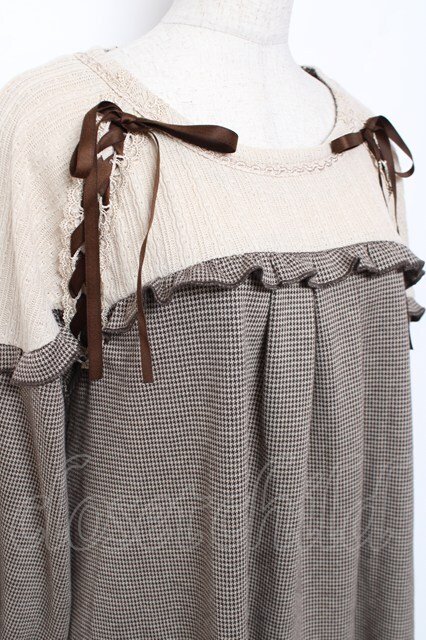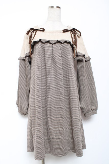 axes femme / ヨーク切替千鳥柄カットチュニ M 茶 Y-26-01-09-102-AX-OP-SZ-ZY