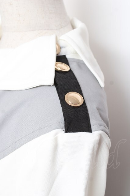 IRO+IRO / 配色×変形アシンメトリーモードシャツワンピース M 白×黒 Y-26-01-09-114-LO-OP-SZ-ZY