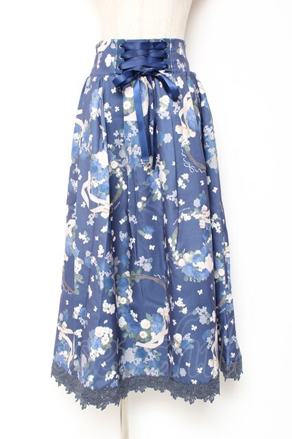 axes femme / ローズリース柄スカート F 紺 Y-26-01-09-142-AX-SK-SZ-ZY
