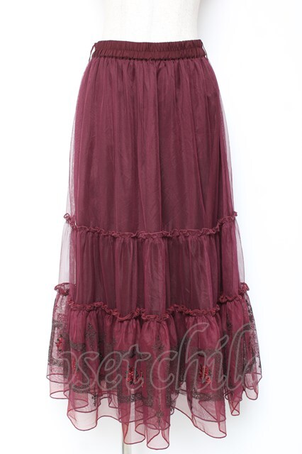 axes femme / 額縁刺繍チュールスカート F ワイン Y-26-01-09-148-AX-SK-SZ-ZY
