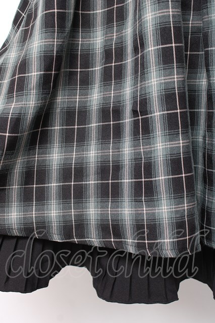 axes femme / 裾プリーツチェック柄スカート M 黒 Y-26-01-09-153-AX-SK-SZ-ZY