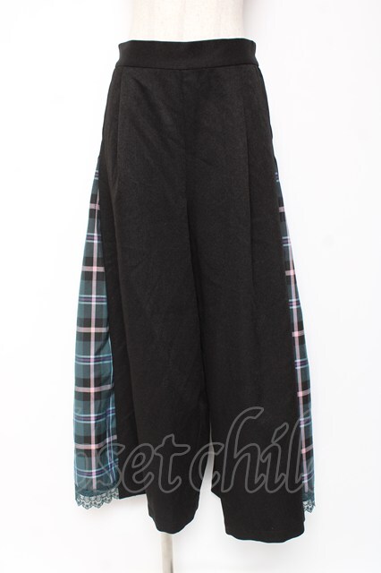 axes femme / チェック切替ワイドパンツ L 黒 Y-26-01-09-157-AX-PA-SZ-ZY