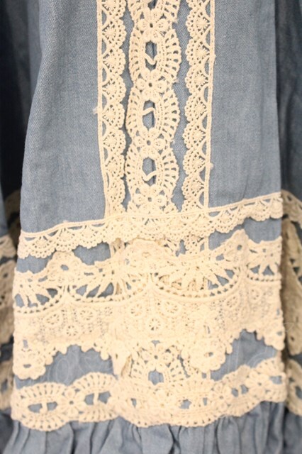 Favorite / レース配色ワンピース M~L サックス O-26-01-10-073-LO-OP-OW-OS