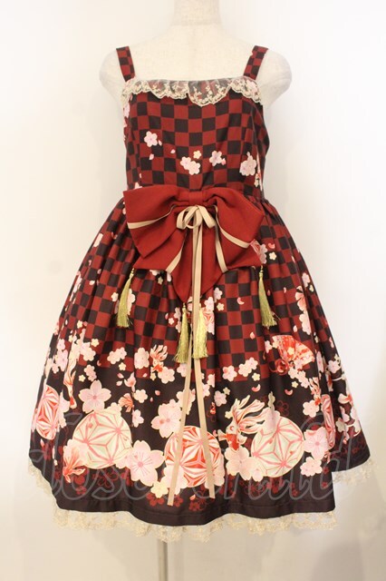 Doll Paradise / 手毬&金魚和風プリントジャンパースカート M アカ O-26-01-10-054-LO-OP-OW-OS