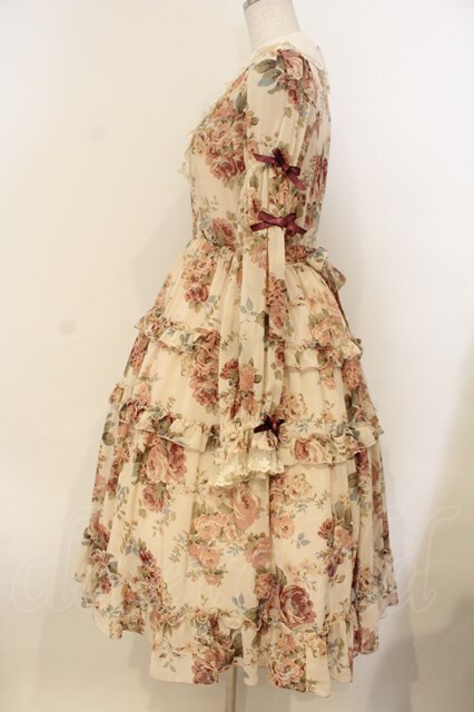Innocent World / ローズシフォン丸衿ドレス M ピンクxボルドー O-26-01-10-057-IW-OP-YM-OS