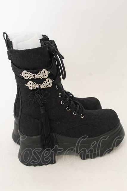axes femme POETIQUE / チャイナ釦タンクソールブーツ M クロ O-26-01-09-048-AX-SH-OW-ZT0111D