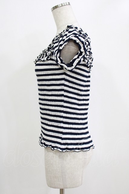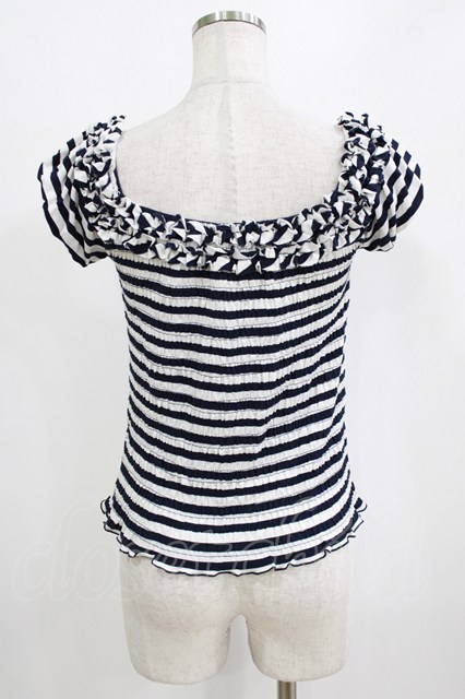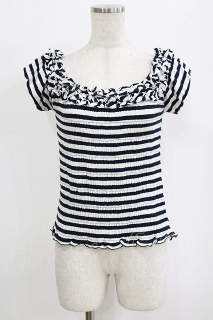 Secret Honey / シャーリングボーダートップス Free ネイビー H-26-01-15-092-CA-TO-NS-ZH