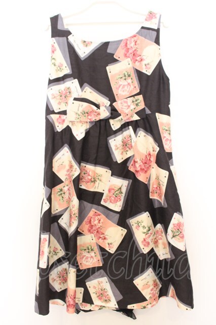 JESUS DIAMANTE / BIGフリルワンピース 42 トランプ薔薇柄クロ O-26-01-11-011-JE-OP-OW-OS