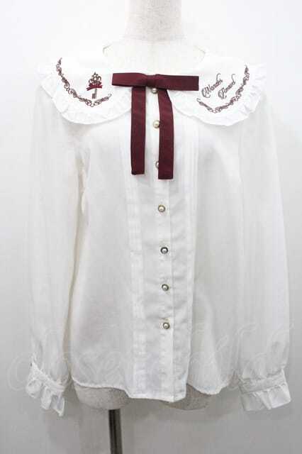 Amavel / 鍵刺繍ブラウス 白Xボルドー I-26-01-10-005-CA-BL-SA-ZI