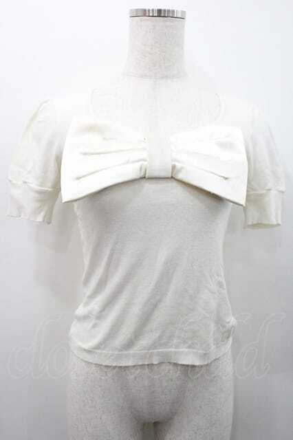 JESUS DIAMANTE / フロントリボン半袖ニットトップス 白 I-26-01-10-008-JE-TO-SA-ZI