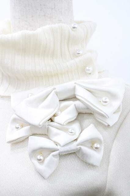 JESUS DIAMANTE / パールリボンハイネックニットトップス 生成り I-26-01-10-016-JE-TO-SA-ZI