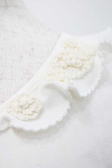 INGEBORG / フリル襟&モチーフ付半袖トップス M アイボリー I-26-01-10-029-LO-TO-SA-ZI