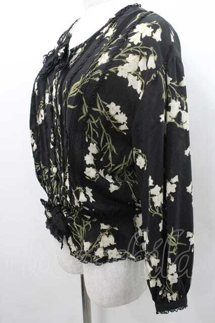 INGEBORG / 百合柄2つリボン長袖シアーブラウス ブラック I-26-01-10-030-LO-BL-SA-ZI [2100060000048722-I-26-01-10-030-LO-BL-SA-ZI]