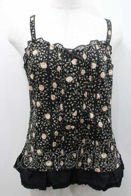 PINK HOUSE / 薔薇柄前開きキャミソール L ブラック I-26-01-10-038-LO-TO-SA-ZI [2100060000048718-I-26-01-10-038-LO-TO-SA-ZI]