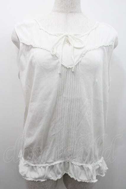 PINK HOUSE / 胸元切替&縦ピンタックノースリーブトップス L ホワイト I-26-01-10-043-LO-TO-SA-ZI [2100060000048702-I-26-01-10-043-LO-TO-SA-ZI]