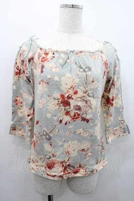 INGEBORG / 花柄リボン結び五分袖トップス M サックス I-26-01-10-045-LO-TO-SA-ZI [2100060000048707-I-26-01-10-045-LO-TO-SA-ZI]