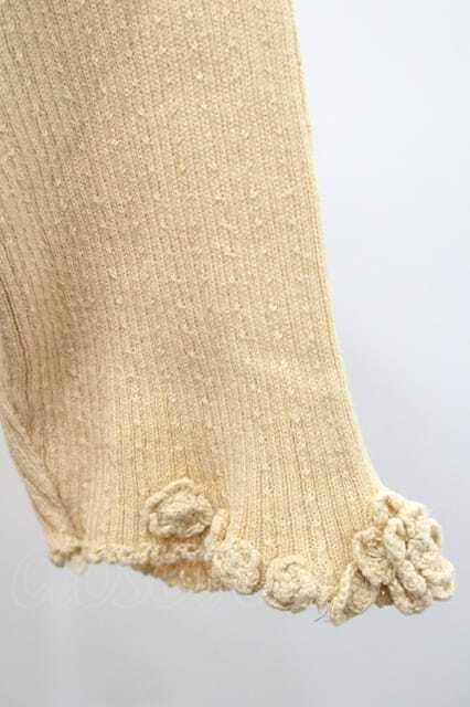INGEBORG / モチーフ付き五分袖ニットトップス M イエロー I-26-01-10-051-LO-TO-SA-ZI