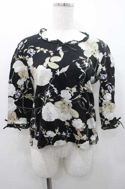 INGEBORG / 花柄五分袖トップス M ブラック I-26-01-10-059-LO-TO-SA-ZI