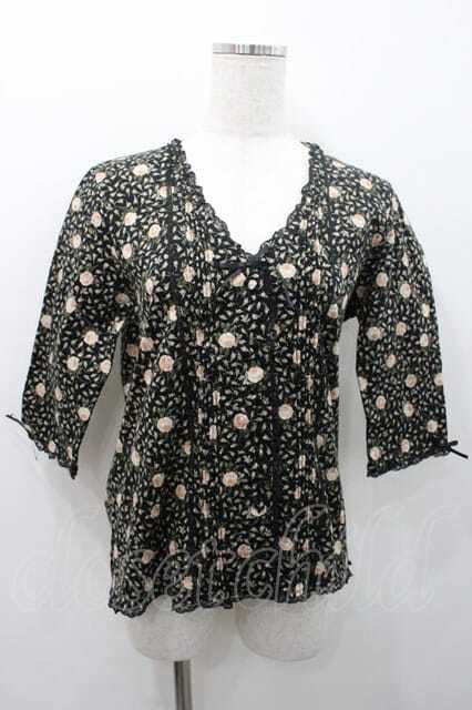 PINK HOUSE / 薔薇柄Vネック五分袖カットソーカーディガン L ブラック I-26-01-10-060-LO-TO-SA-ZI [2100060000048709-I-26-01-10-060-LO-TO-SA-ZI]