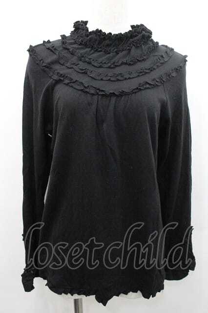 PINK HOUSE / ハイネックフリル長袖カットソー 黒 I-26-01-10-067-LO-TO-SA-ZI [2100060000047781-I-26-01-10-067-LO-TO-SA-ZI]