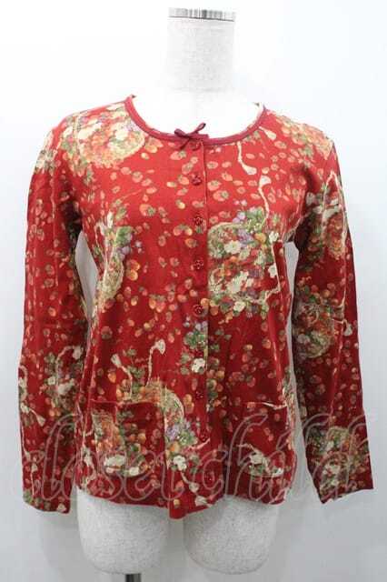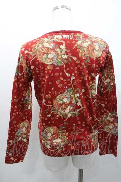 PINK HOUSE / いちごバスケット柄カットカーディガン 赤 I-26-01-10-071-LO-TO-SA-ZI