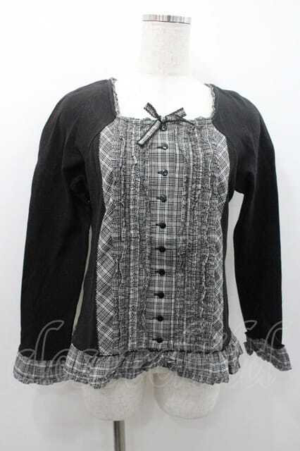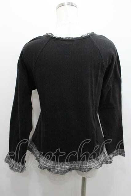 PINK HOUSE / ラグランスリーブフリルカットソー 黒Xチェック I-26-01-10-072-LO-TO-SA-ZI [2100060000047776-I-26-01-10-072-LO-TO-SA-ZI]