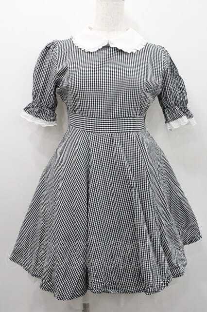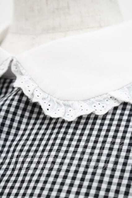 evelyn / コットンレース丸襟ギンガムワンピース 黒X白チェック I-26-01-10-082-LO-OP-SA-ZI