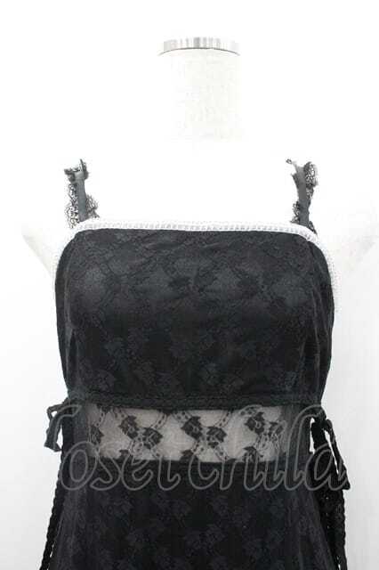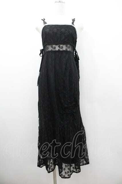 Me roir / レースロングキャミワンピース 黒xシルバー I-26-01-10-097-0-OP-SA-ZI