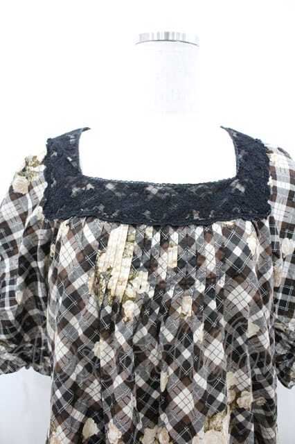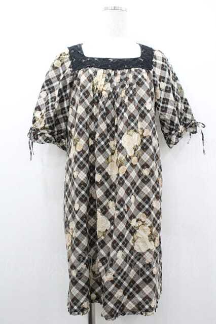PINK HOUSE / チェック薔薇柄スクウェアネックチュニックワンピース ブラウン I-26-01-10-099-LO-OP-SA-ZI