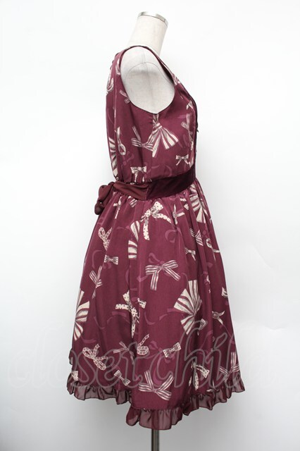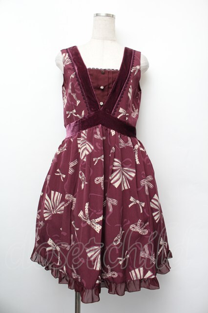 axes femme / ベロア切替リボン柄チュニック ワイン S-26-01-10-044-AX-OP-AS-ZS