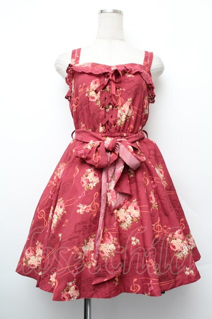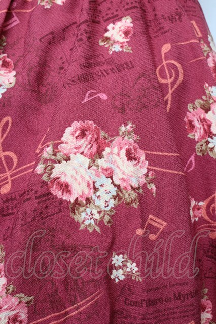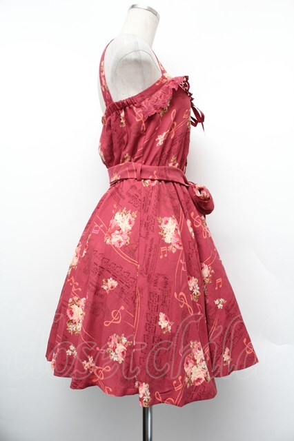 LIZ LISA / 音符×花柄×天使柄ワンピース ワイン S-26-01-10-047-LO-OP-AS-ZS