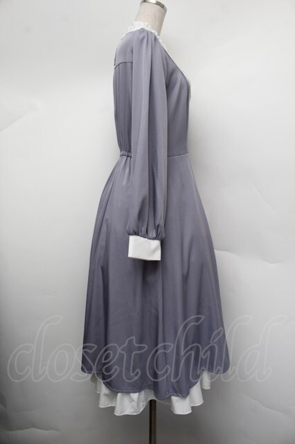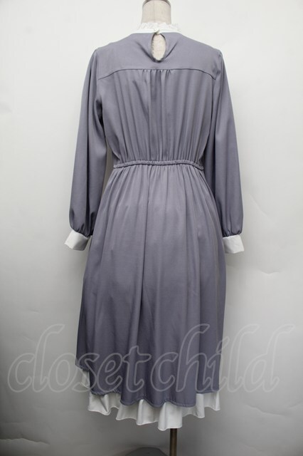axes femme / ブローチセットロマンワンピース(ブローチ欠品) ブルーグレー S-26-01-10-052-AX-OP-AS-ZS