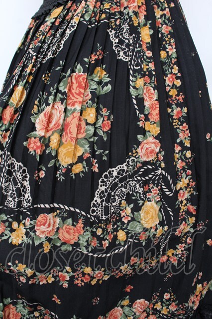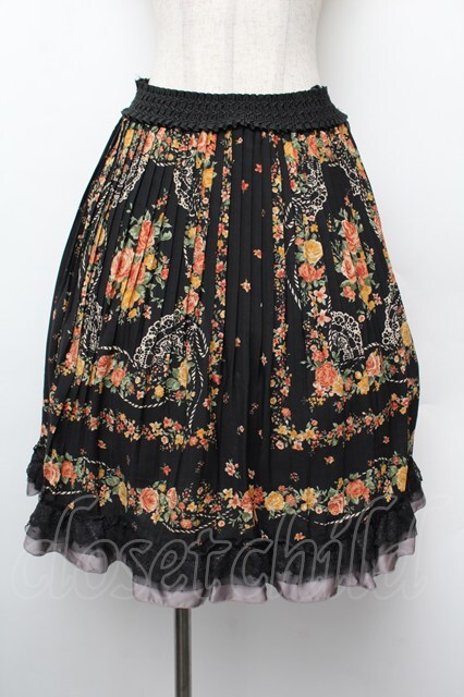 axes femme / スカーフ柄プリーツスカート 黒 S-26-01-10-062-AX-SK-HR-ZS