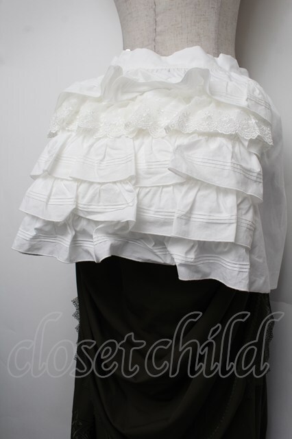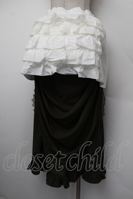 中国ロリータ / エプロン付き裾刺繍ロングスカート カーキx白 S-26-01-10-065-LO-SK-HR-ZS [2100020000034386-S-26-01-10-065-LO-SK-HR-ZS]