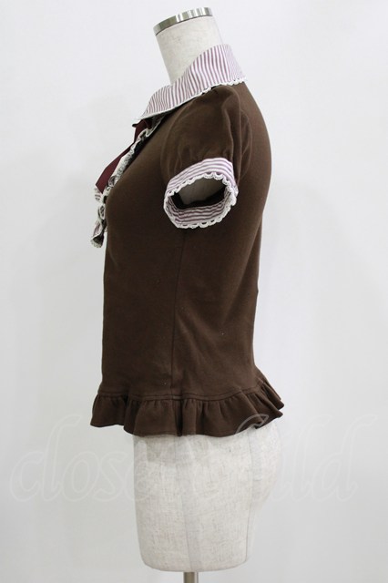 Angelic Pretty / ブリジットストライプカットソー Free ブラウン H-26-01-16-040-AP-TO-NS-ZH [2100030000083371-H-26-01-16-040-AP-TO-NS-ZH]