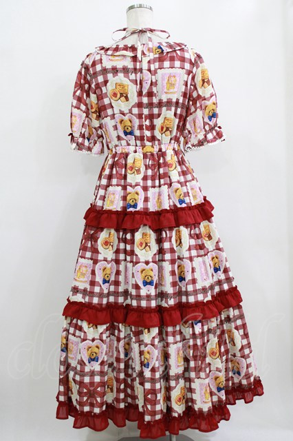 axes femme Kawaii / ベアズベーカリー柄ロングワンピース M ワイン H-26-01-16-009-AX-OP-YZ-ZH