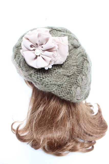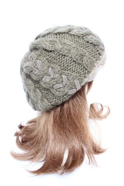 axes femme / ケーブル編みニット帽 グリーン Y-26-01-12-020-AX-AC-SZ-ZY